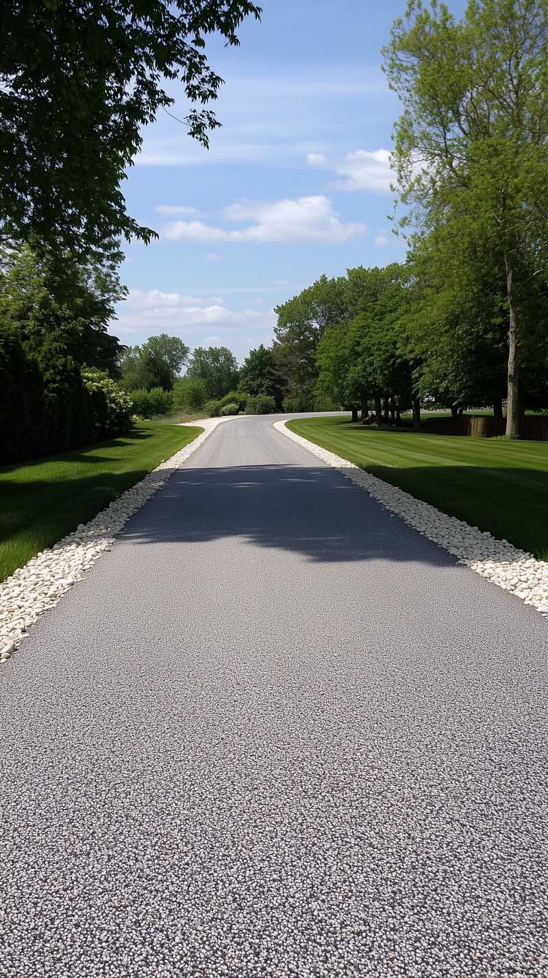 A chip seal driveway, often referred to as a tar and chip driveway, is created by applying a layer of liquid asphalt followed by a topping of crushed stones. This method is not only budget-friendly but also offers long-lasting durability and an attractive appearance. The installation process requires careful execution: liquid asphalt is first sprayed onto the prepared ground, acting as an adhesive for the stone chips that are then evenly distributed over it. Various types of sealants provide distinct advantages, yet all serve to guard against water infiltration and UV damage. Unlike traditional asphalt driveways that necessitate frequent resealing, chip seal driveways offer a more practical solution with less maintenance required. Additionally, there are numerous customization options available in terms of color for the crushed stones used, allowing you to enhance your driveway’s visual appeal. With choices extending well beyond standard black or gray shades, you can create unique color combinations tailored to suit your preferences and complement your home’s exterior and landscaping design.